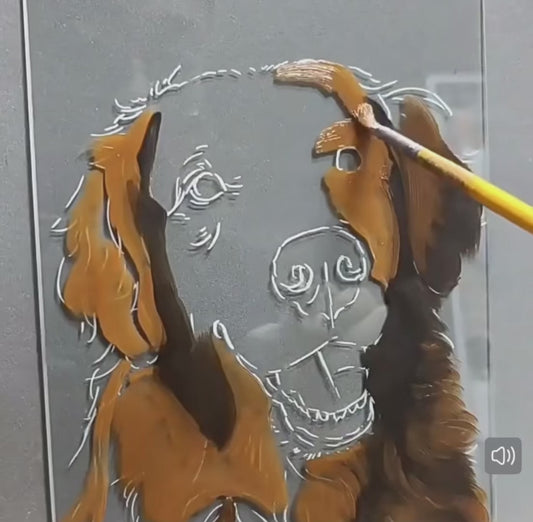 Custom Pet Portrait in Glass Frame – Hand-Drawn Cat & Dog Memorial Artwork