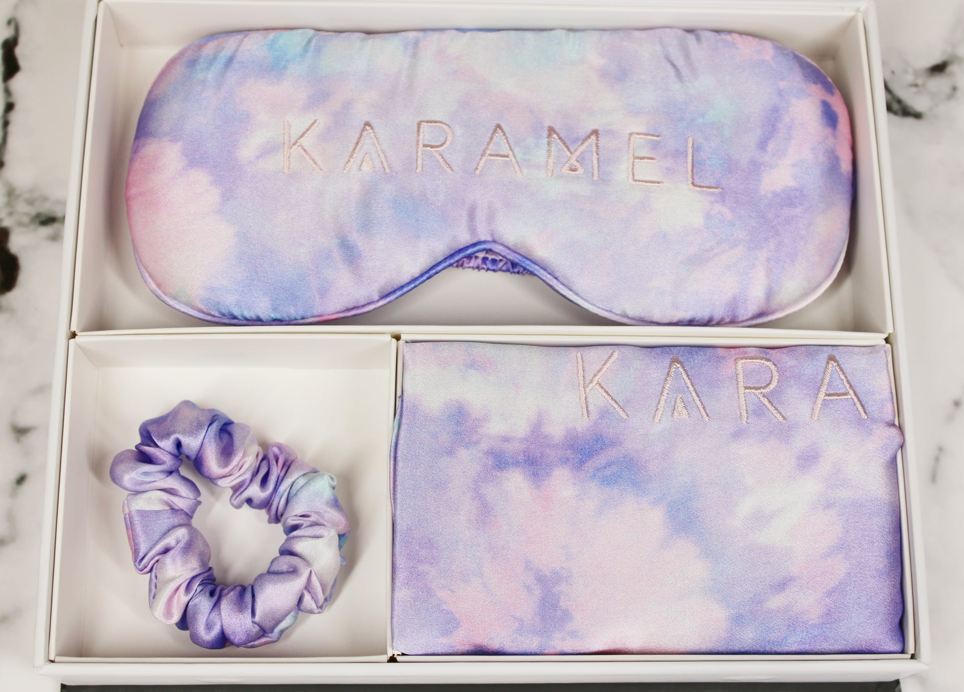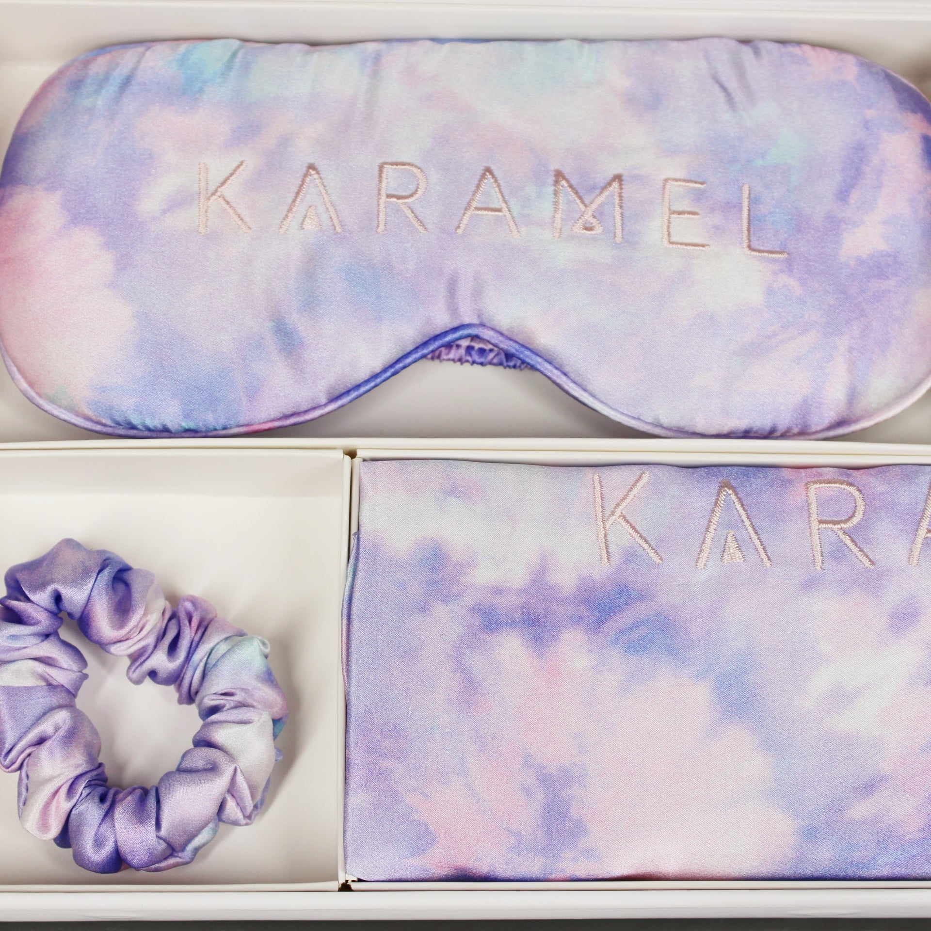 Our KaraMel dream set includes a pillowcase, an eye mask, and a Scrunchie, all made from high-quality mulberry silk, providing them with superior softness and breathability while protecting your skin and hair. This mulberry silk set is the perfect gift for yourself, as well as a thoughtful gift for someone special.
