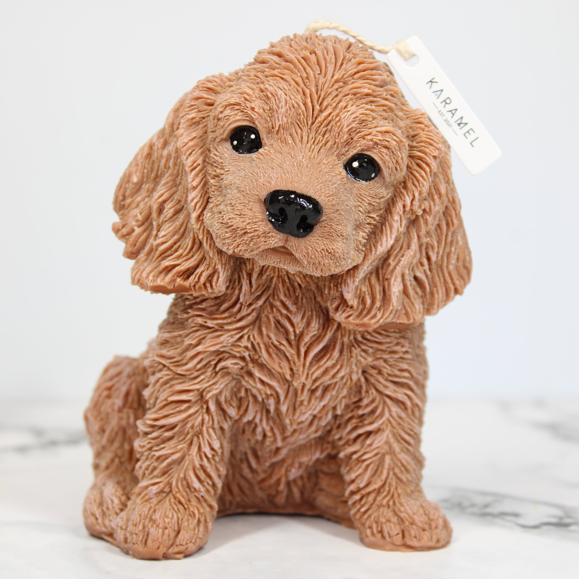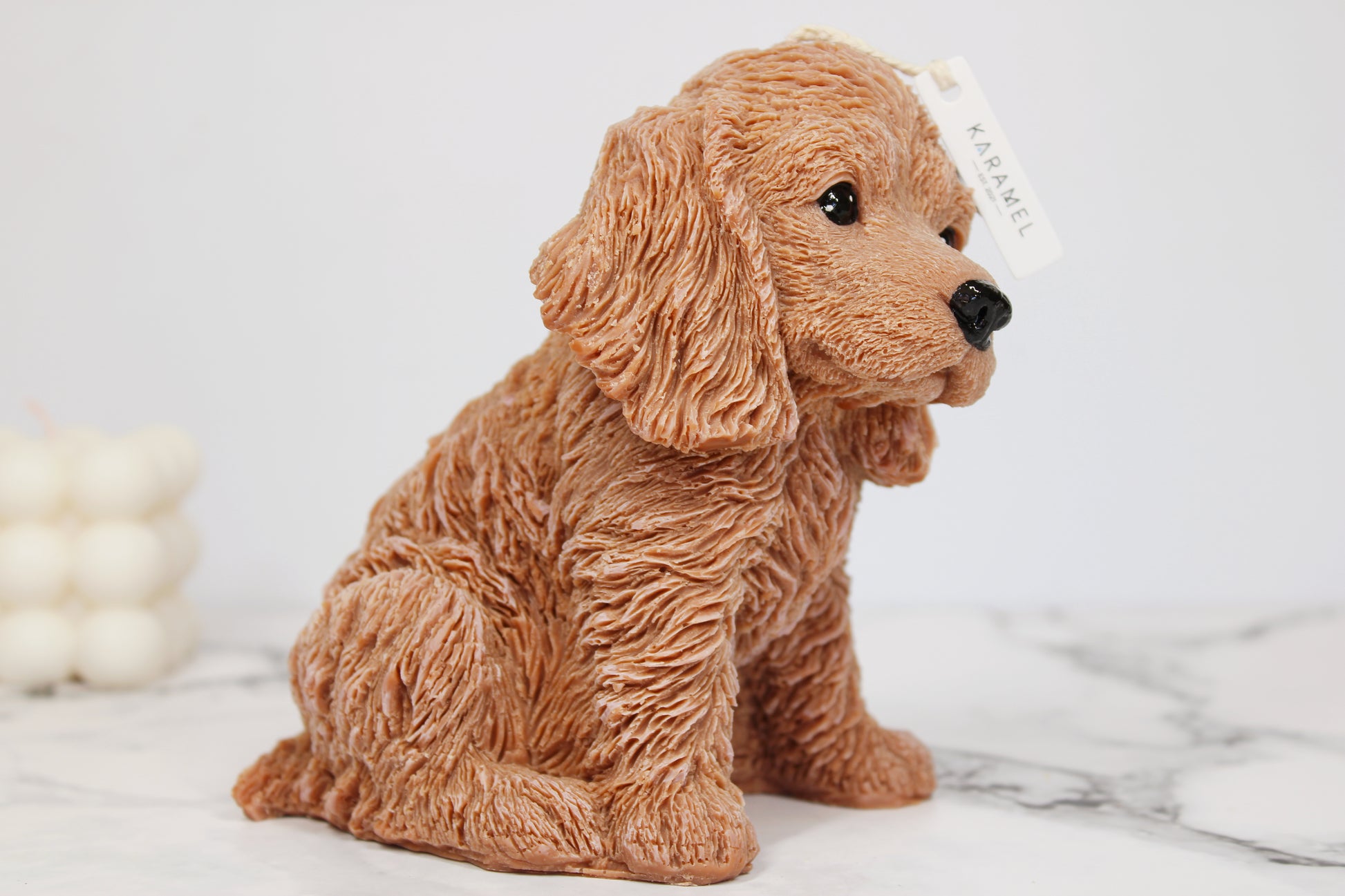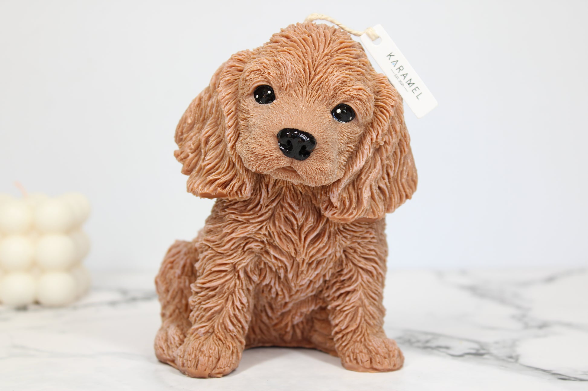 Artfully shaped from eco-friendly soy wax, the Soy Wax Cocker Spaniel Candle is a meticulously crafted, lifelike decorative piece. This charming canine creation adds warmth and character to your space, embodying the spirit of man's best friend in delightful form.