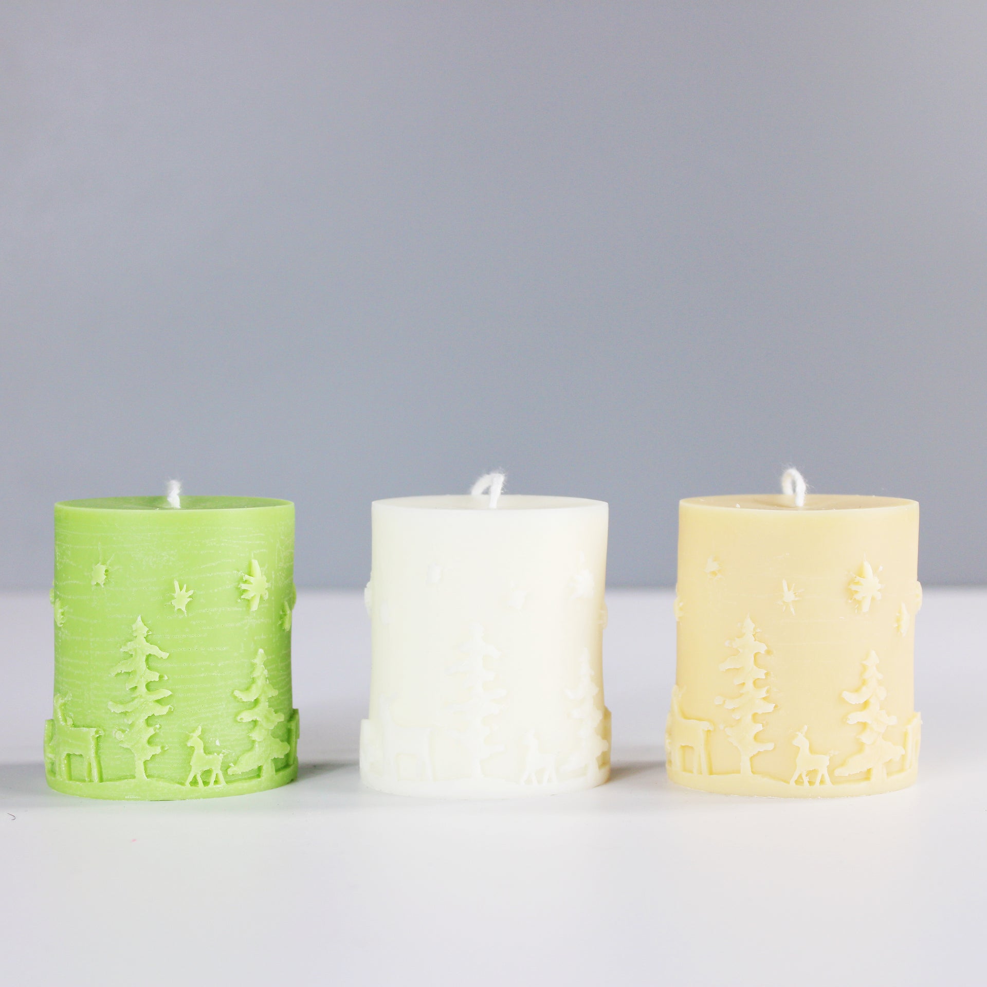 Elevate your holiday ambiance with our exquisite Christmas Embossed Pillar Candle collection. These handcrafted candles, available in a spectrum of enchanting colors, are designed to be the focal point of your festive decor. Crafted with utmost precision from 100% all-natural soy wax, they embody eco-conscious luxury, ensuring a clean, enduring burn.