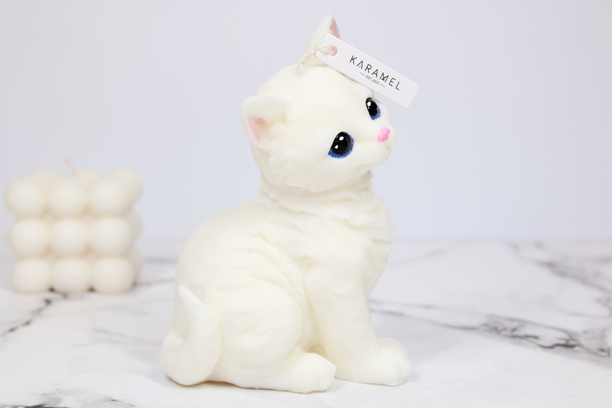 Introducing our enchanting Tilted Head Kitten Candle, meticulously crafted with 100% natural pure soy wax. Immerse yourself in the soothing glow of this eco-friendly masterpiece, thoughtfully designed to evoke warmth and tranquility. The whimsical charm of the tilted kitten shape adds a delightful touch to any space, making it a perfect gift or home decor accessory. Hand-poured with precision, our candles burn cleanly, emitting a subtle, relaxing fragrance. Elevate your ambiance with this premium, sustainable creation, ensuring both aesthetic appeal and eco-conscious choices. Embrace serenity with our Tilted Head Kitten Candle – where craftsmanship meets adorable design.