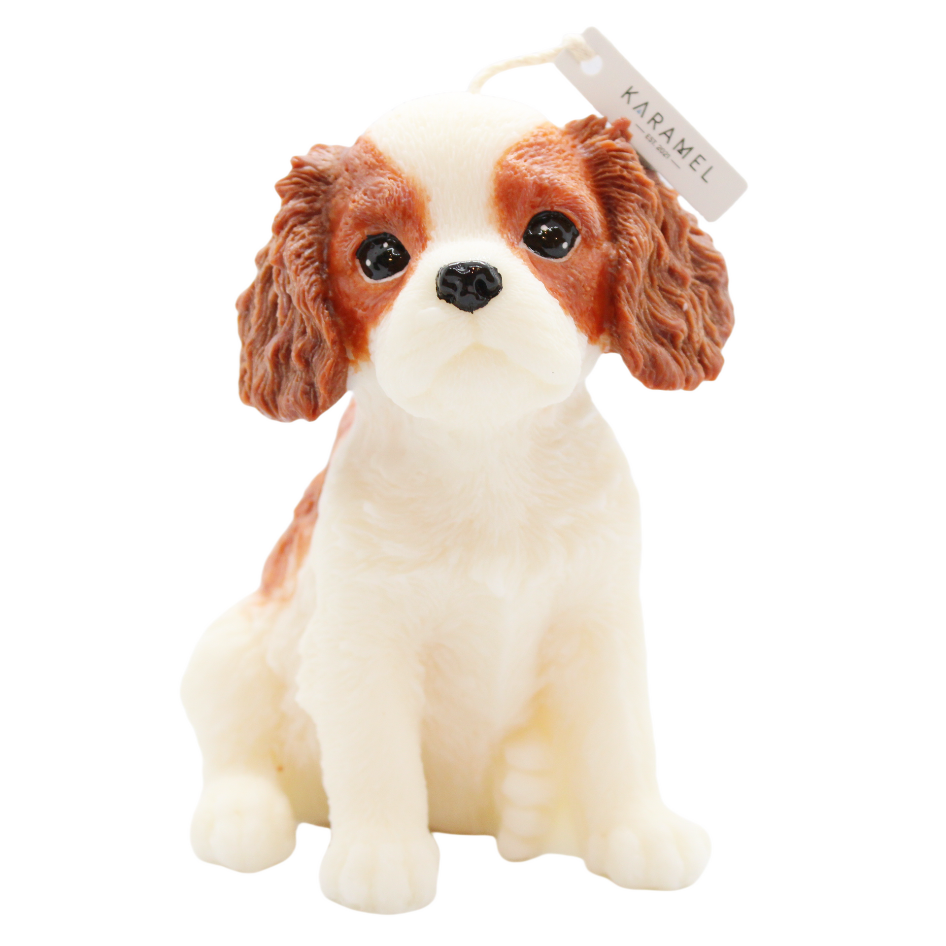 Introducing our exquisite Cavalier King Charles Spaniel Candle, meticulously crafted with natural wax for a clean and eco-friendly burn. Immerse your space in the gentle glow and delightful fragrance, capturing the essence of these charming companions. Each candle is expertly designed, featuring a lifelike representation of the beloved Cavalier King Charles Spaniel. Our premium natural wax ensures a long-lasting, clean burn, free from harmful toxins. Perfect for dog lovers and home decor enthusiasts alike, this meticulously crafted candle not only adds warmth and ambiance but also pays homage to the timeless elegance of the Cavalier King Charles Spaniel. Elevate your space with this enchanting canine-inspired masterpiece.