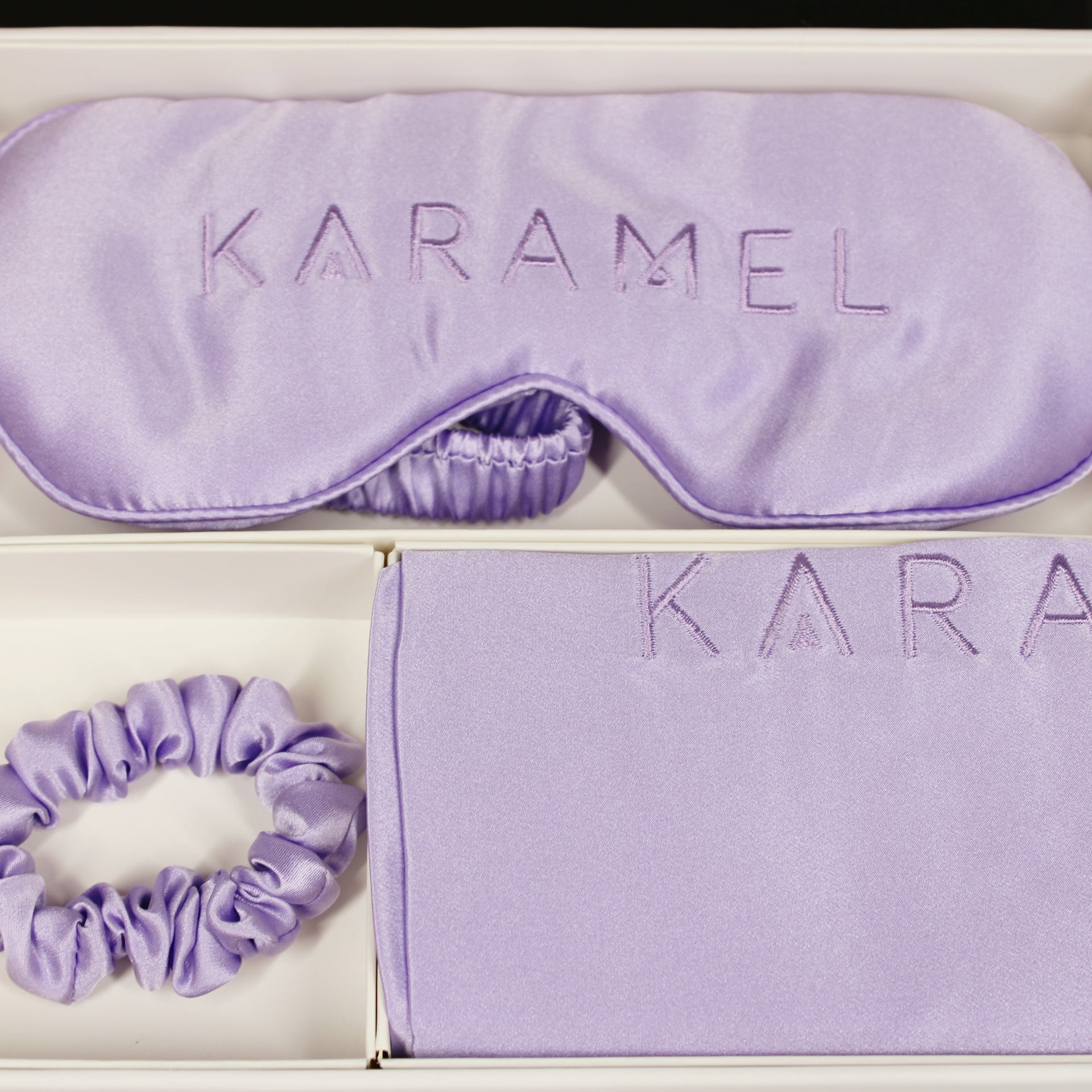 Our KaraMel dream set includes a pillowcase, an eye mask, and a Scrunchie, all made from high-quality mulberry silk, providing them with superior softness and breathability while protecting your skin and hair. This mulberry silk set is the perfect gift for yourself, as well as a thoughtful gift for someone special.