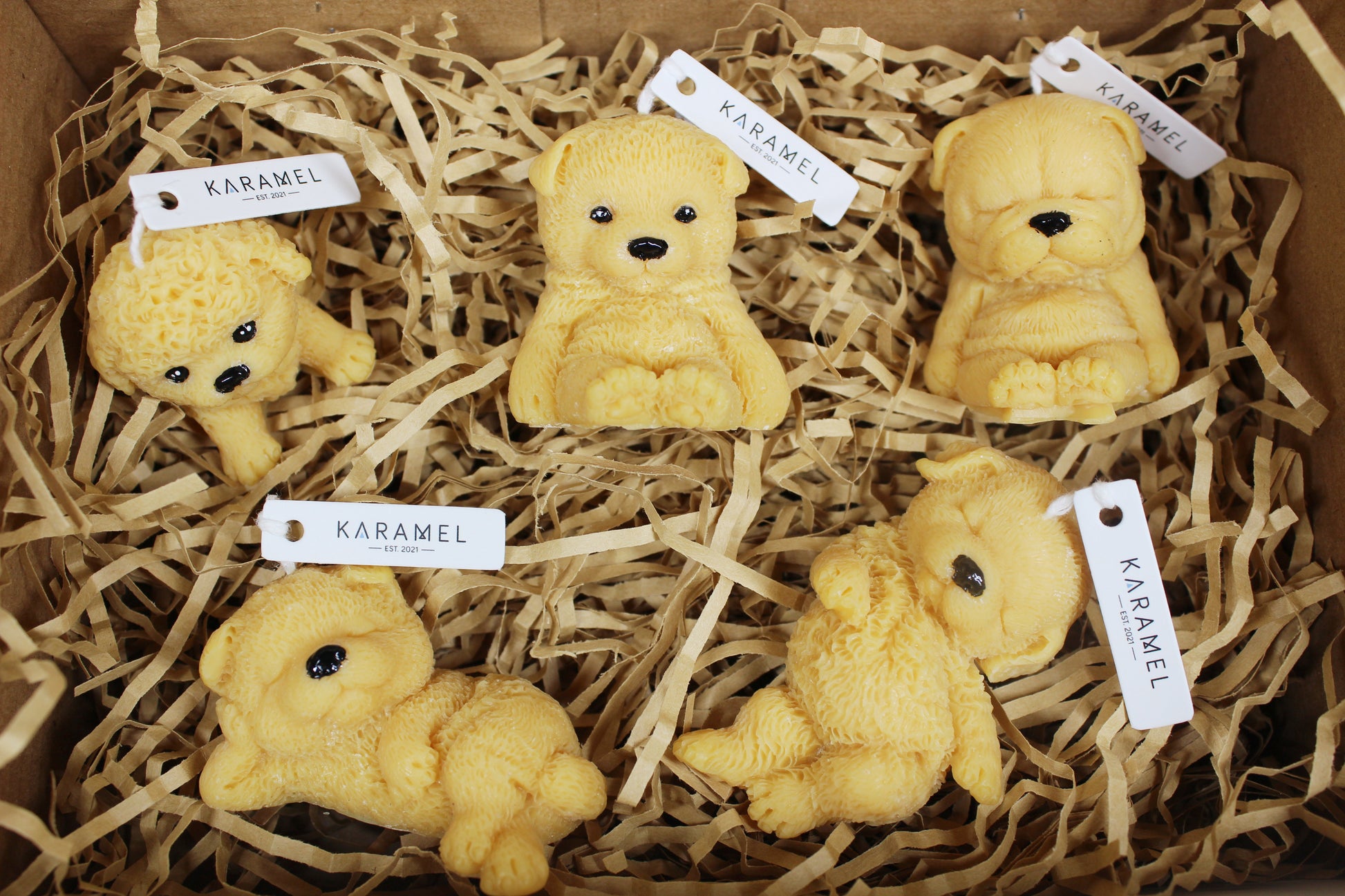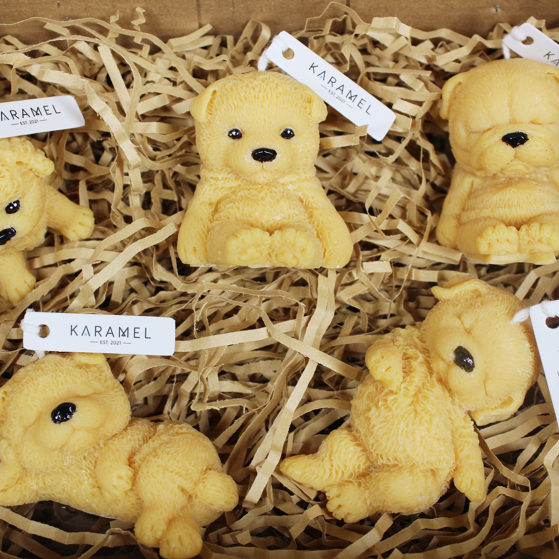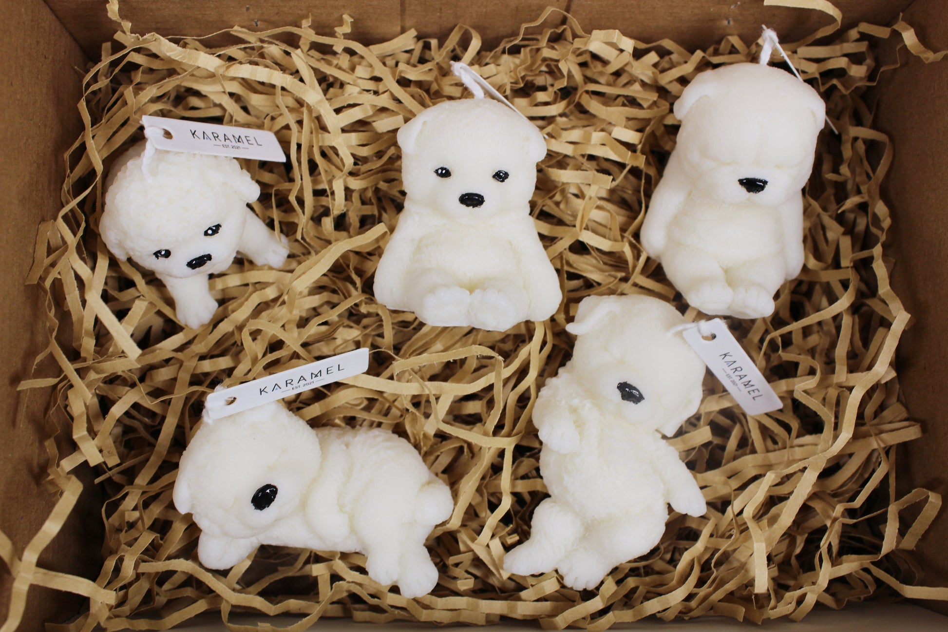 Introducing our adorable Puppy Candle Gift Box, a delightful and heartwarming surprise for dog lovers and candle enthusiasts alike. Crafted with love and care, this set includes five tiny puppy-shaped candles that will bring joy and warmth to any space.