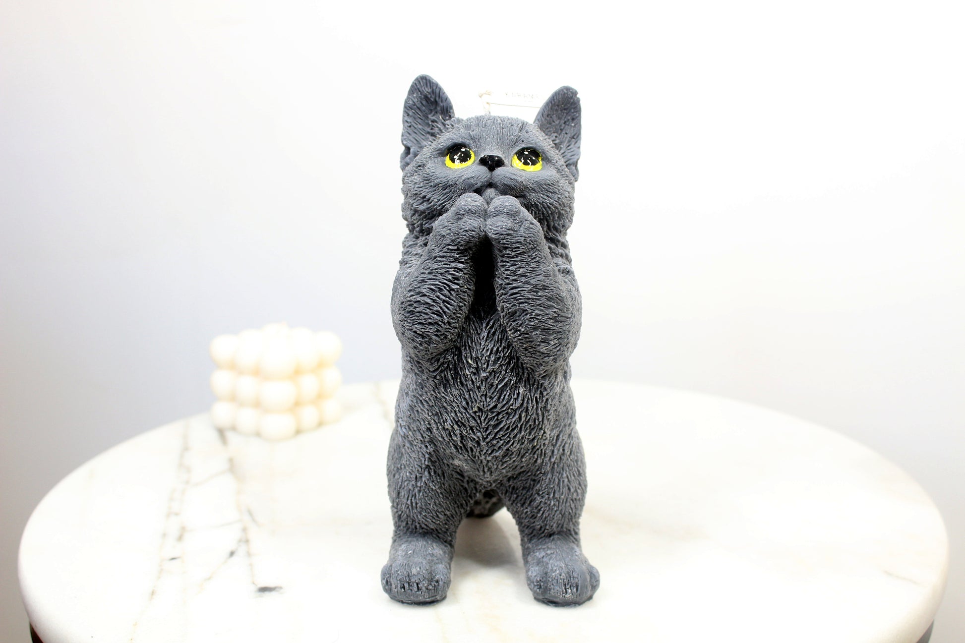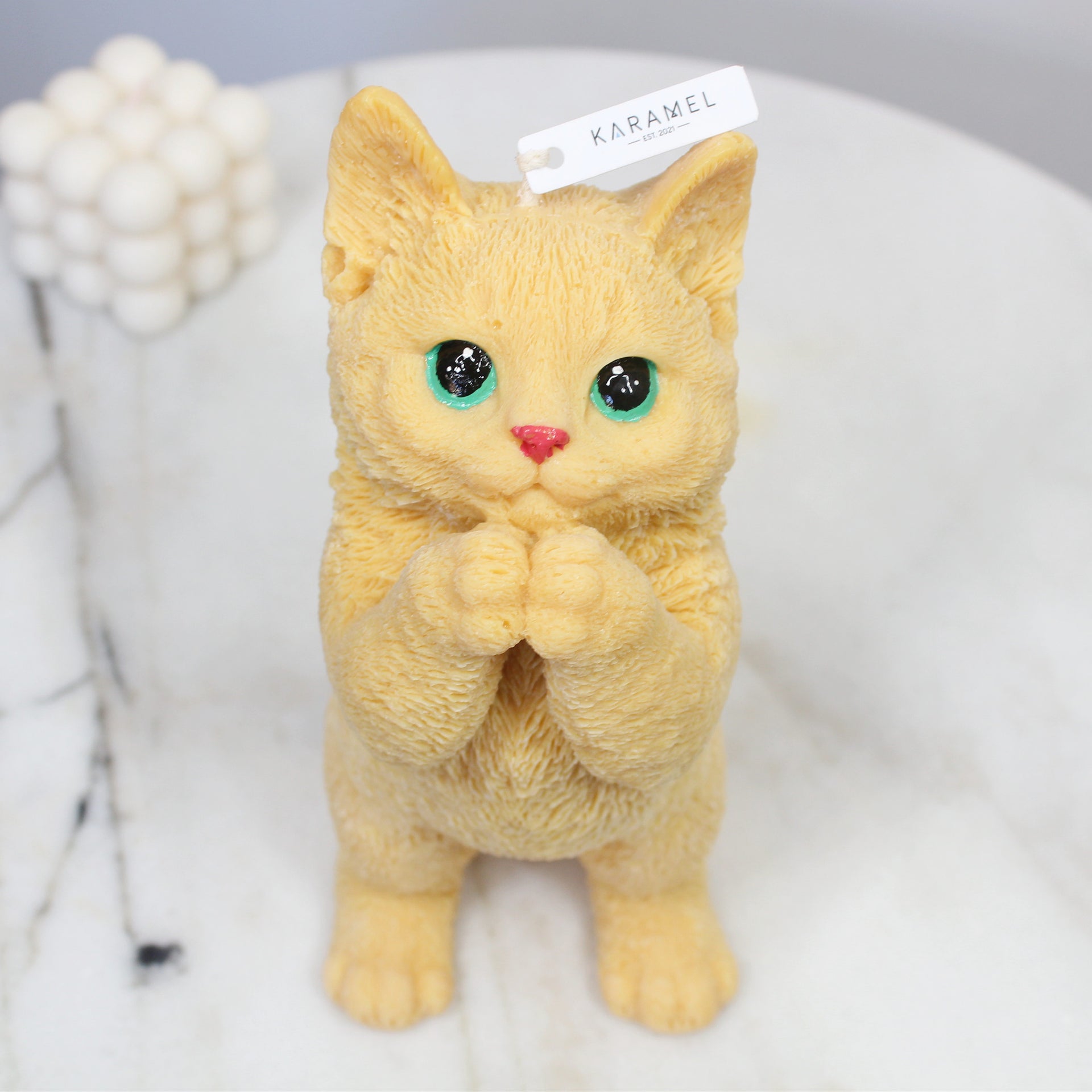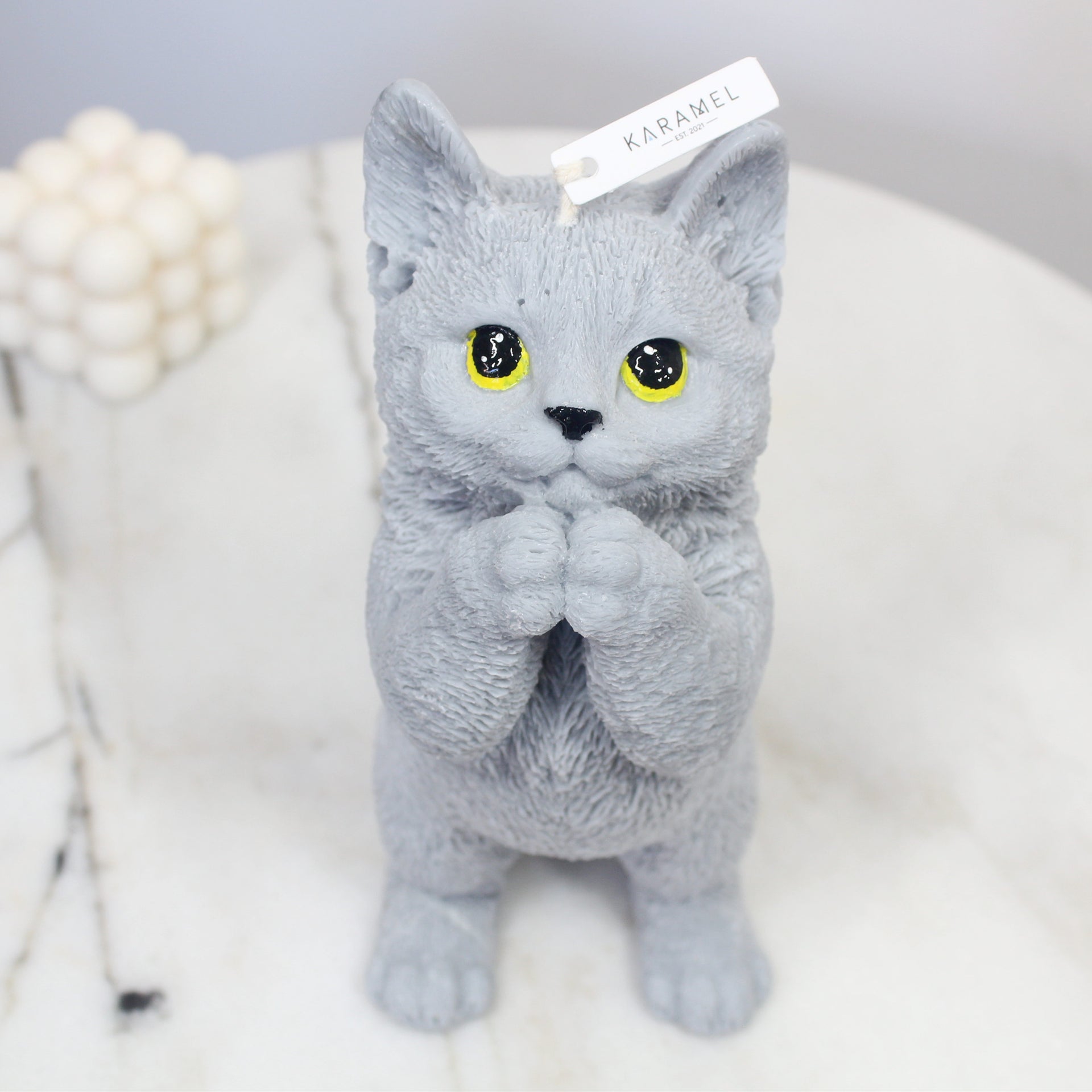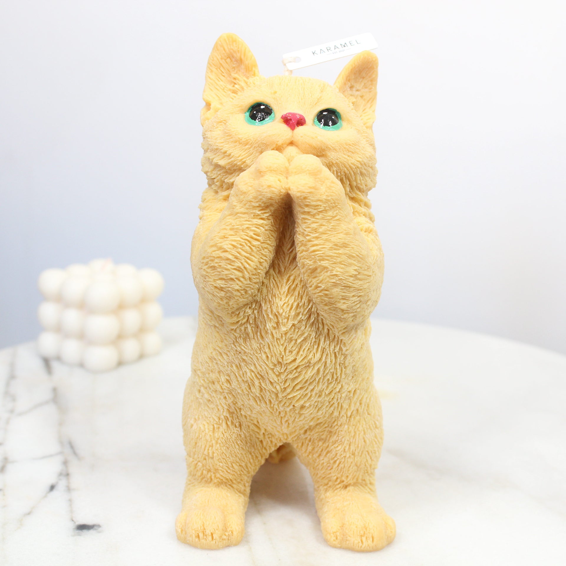 Introducing our Soy Wax Praying Cat Candle, a tranquil fusion of artistry and simplicity. Meticulously crafted from premium soy wax, this candle features a poised cat in prayer, offering a serene aesthetic. Its clean burn creates a calming ambiance, perfect for meditation or as a minimalist decor accent. Embrace the quiet elegance of this candle, bringing a touch of peace and grace to any space. Elevate your surroundings with the Soy Wax Praying Cat Candle — a timeless expression of tranquility and mindfulness.