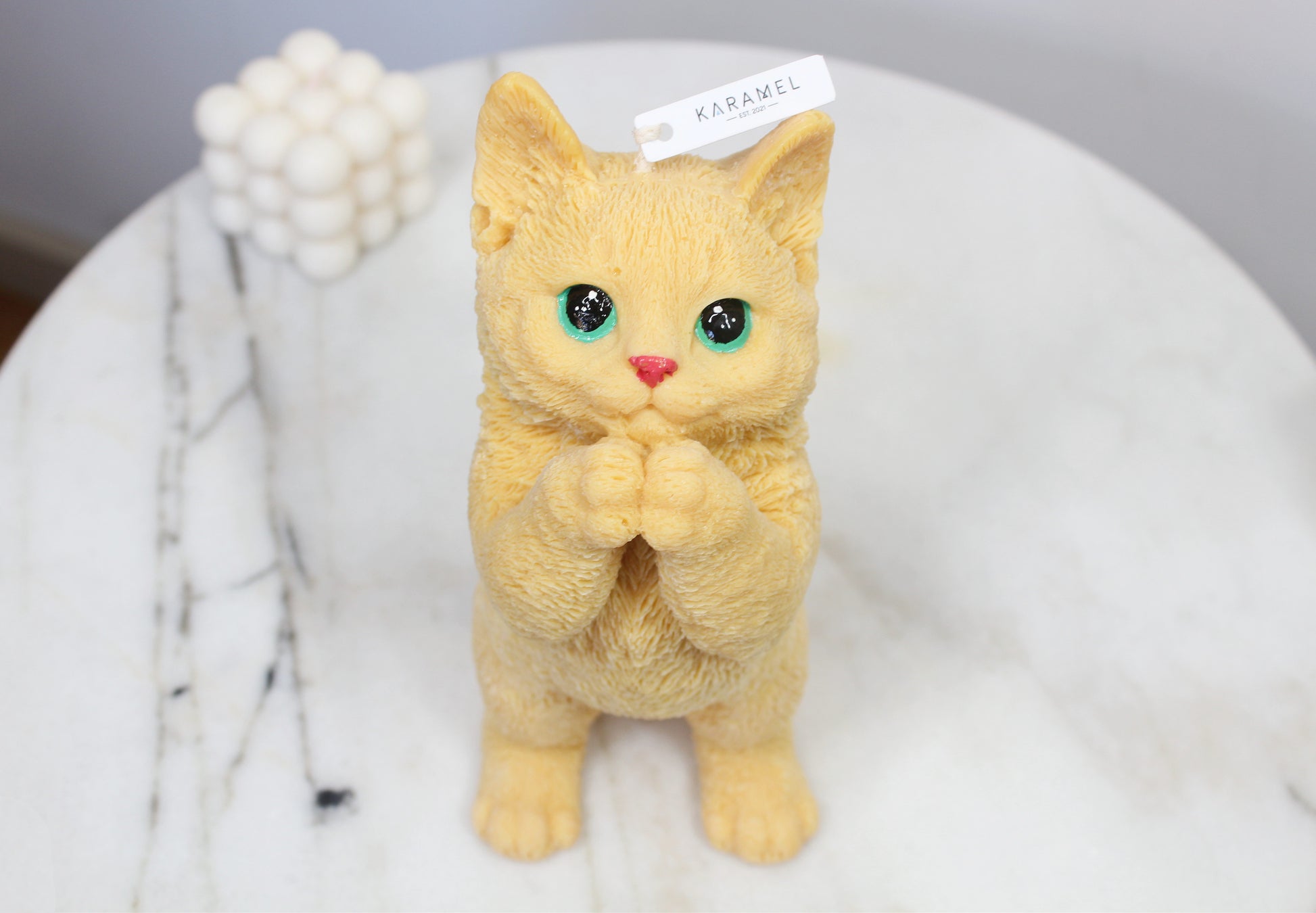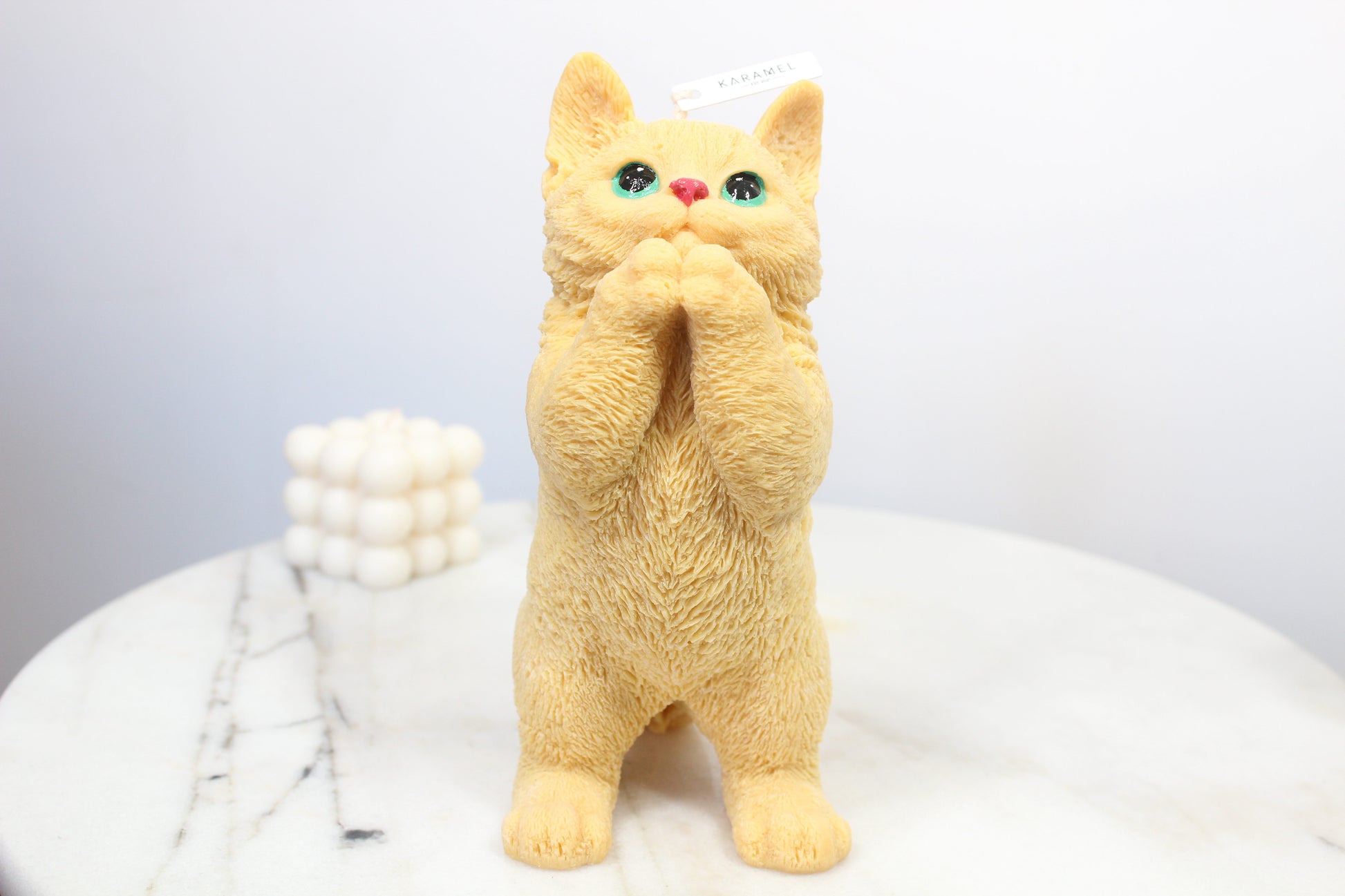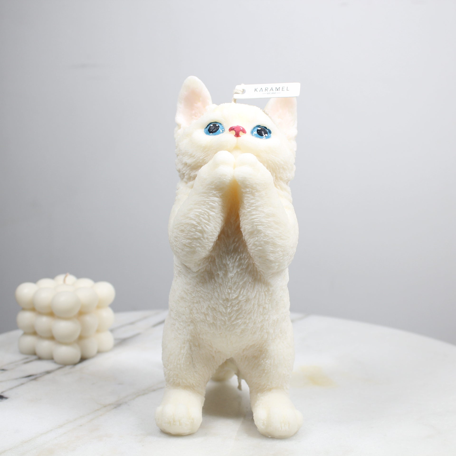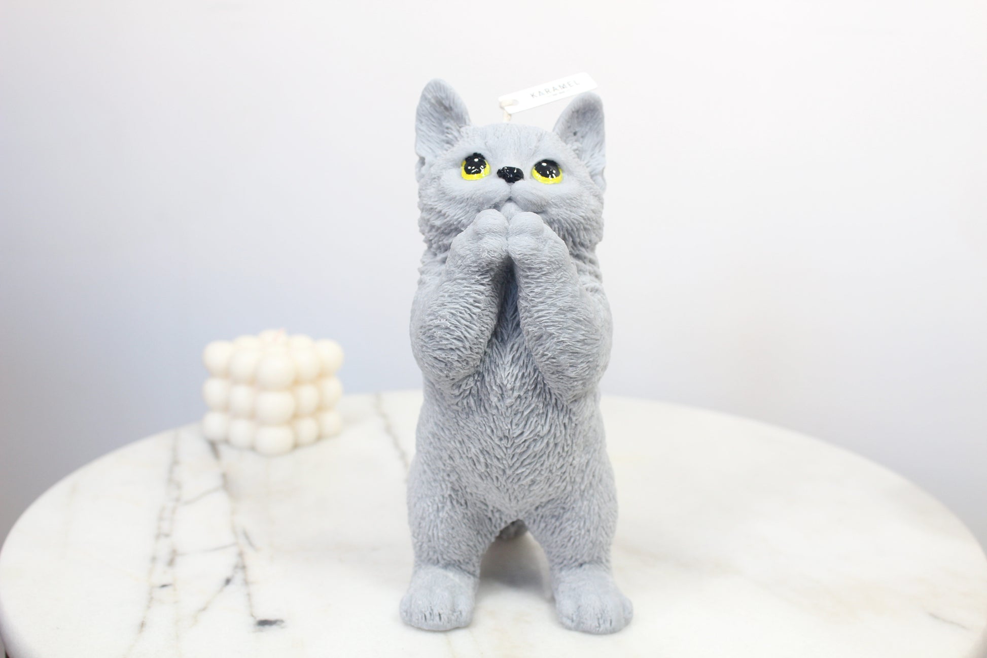 Introducing our Soy Wax Praying Cat Candle, a tranquil fusion of artistry and simplicity. Meticulously crafted from premium soy wax, this candle features a poised cat in prayer, offering a serene aesthetic. Its clean burn creates a calming ambiance, perfect for meditation or as a minimalist decor accent. Embrace the quiet elegance of this candle, bringing a touch of peace and grace to any space. Elevate your surroundings with the Soy Wax Praying Cat Candle — a timeless expression of tranquility and mindfulness.