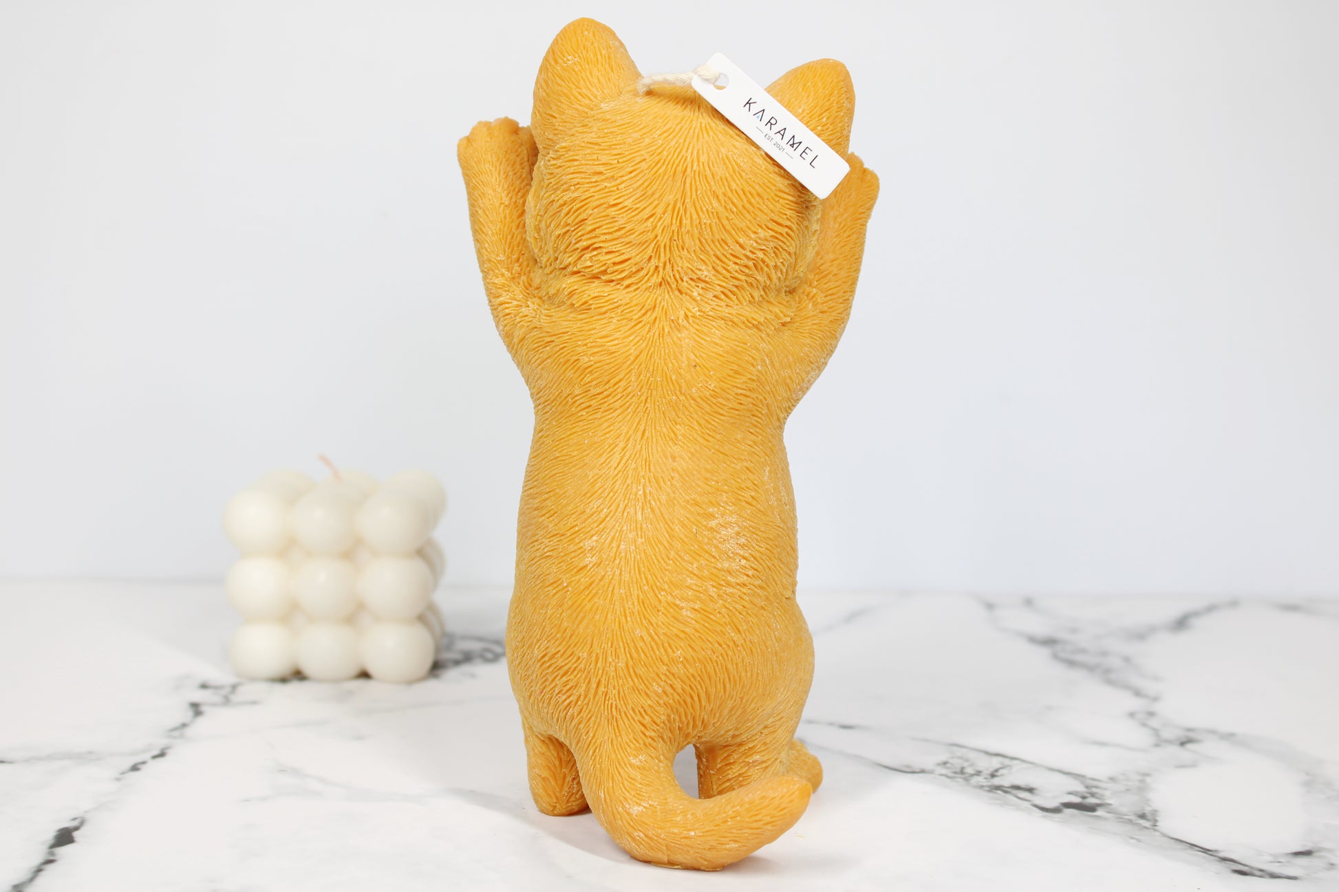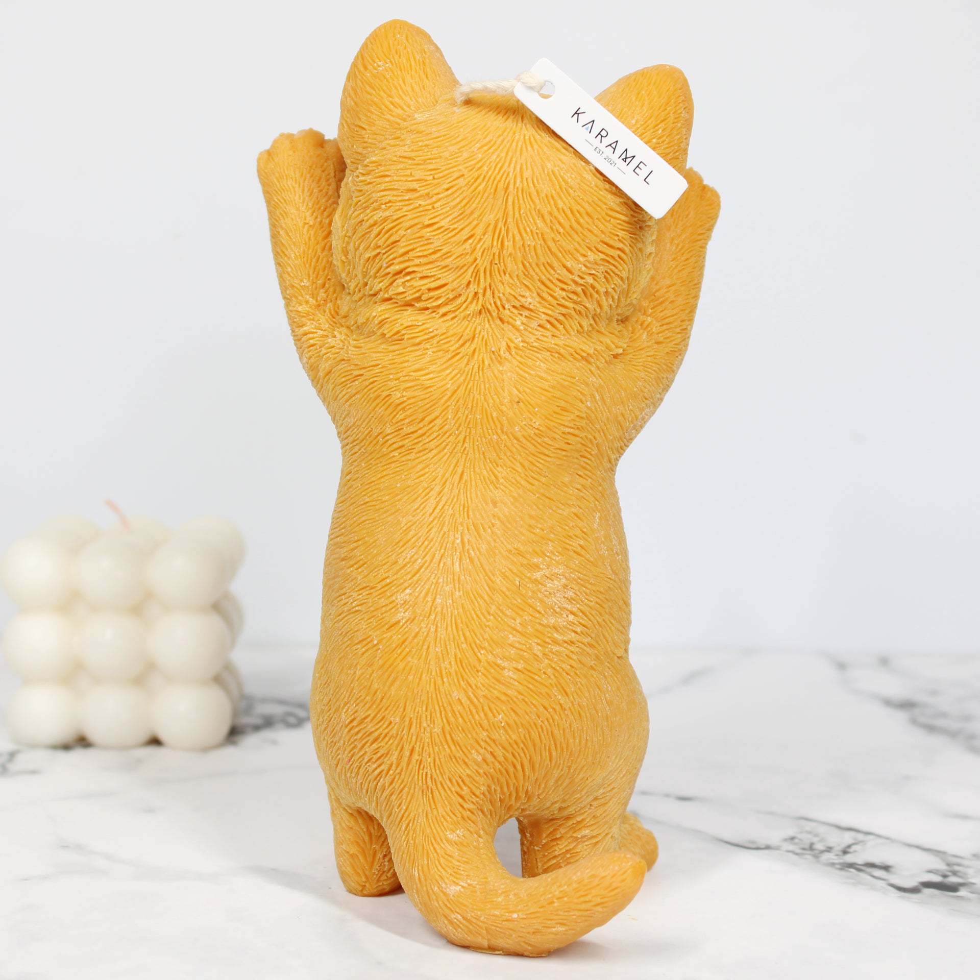 Introducing our Soy Wax Standing Cat Candle, a refined fusion of artistry and simplicity. Meticulously crafted from premium soy wax, this candle features an elegant standing cat, embodying grace. Its clean burn creates a tranquil ambiance, making it an ideal minimalist decor piece or thoughtful gift. Embrace the subtle beauty of this fragrance-free candle, offering a timeless expression of tranquility. Elevate your space with the Soy Wax Standing Cat Candle—a sophisticated addition that exudes quiet elegance and feline charm.